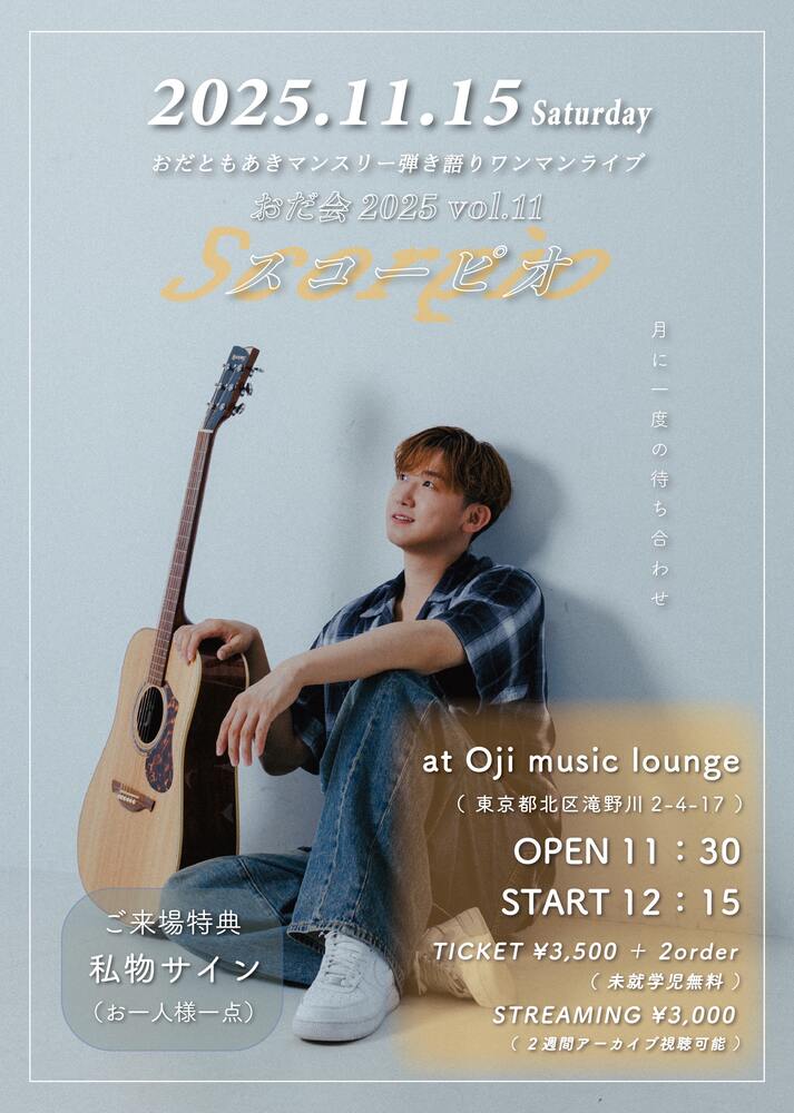 【東京】「おだ会2025 vol.11 〜スコーピオ〜 」マンスリー弾き語りワンマン(at王子)