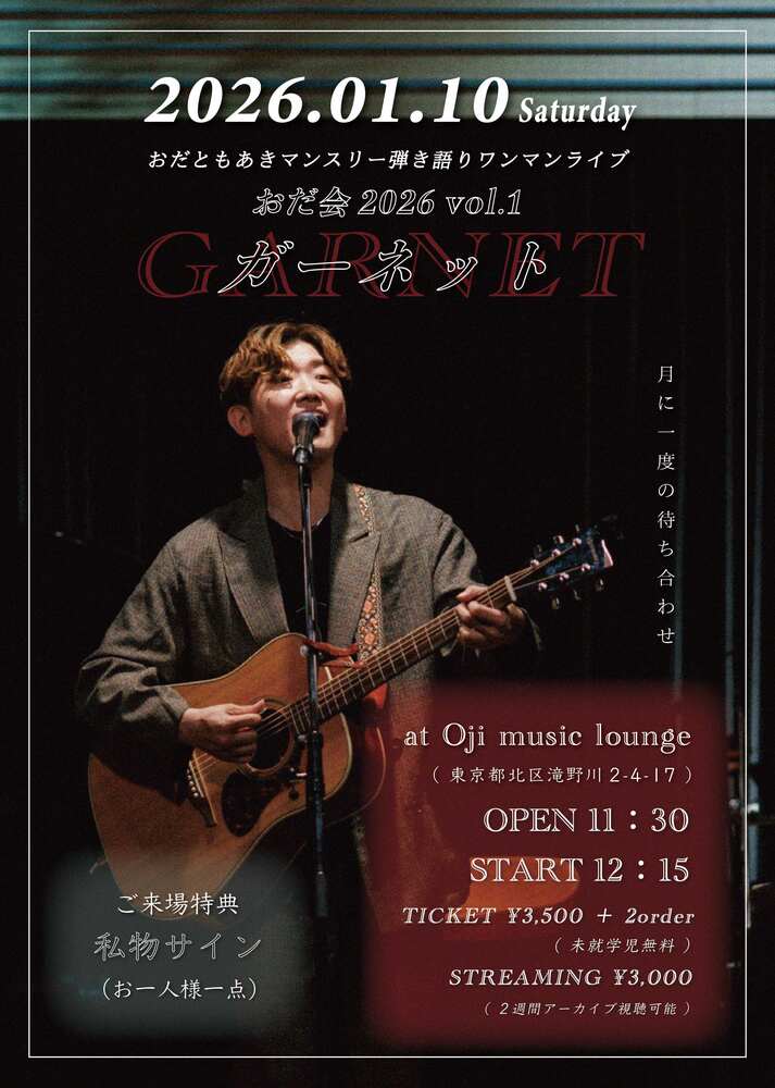 【東京】「おだ会2026 vol.1 〜ガーネット〜 」マンスリー弾き語りワンマン(at王子)