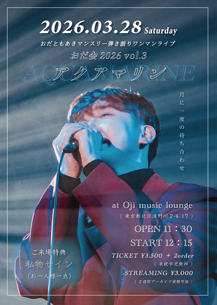 【東京】「おだ会2026 vol.3 〜アクアマリン〜 」マンスリー弾き語りワンマン(at王子)